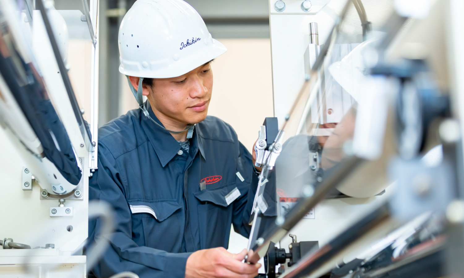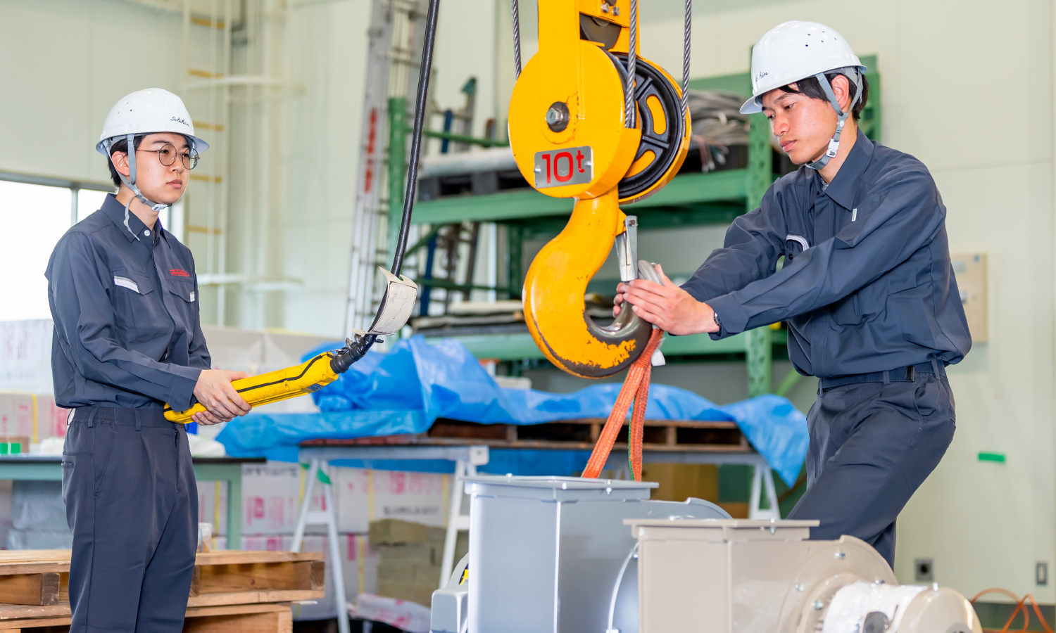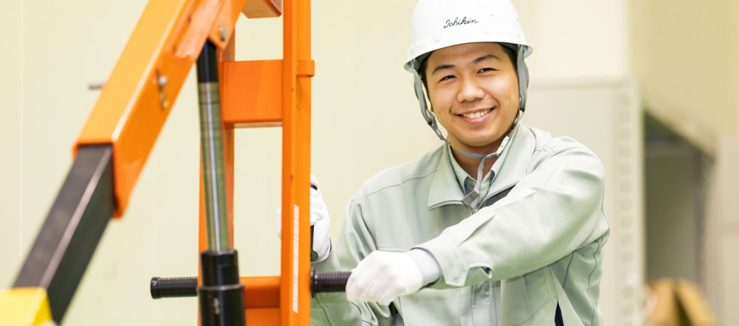 装置の組立、据付工事、試運転や点検などをしています。装置が一つひとつ全て違うため、図面や構造をしっかりと理解する力が必要になります。フォークリフトやクレーンの資格はもちろん、機械保全技能士などの国家資格も取得できます。手先の器用な方、工夫することが好きな方におすすめです。