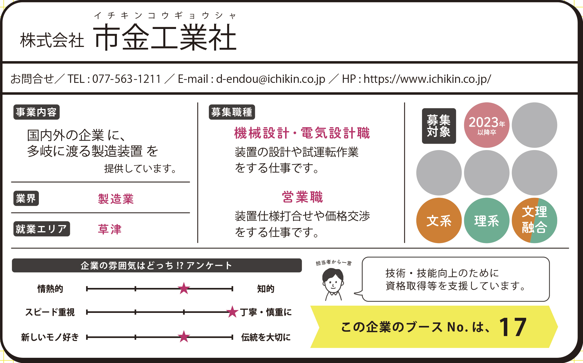 滋賀県が主催する合同企業説明会「しがジョブフェスティバル」に出展します。